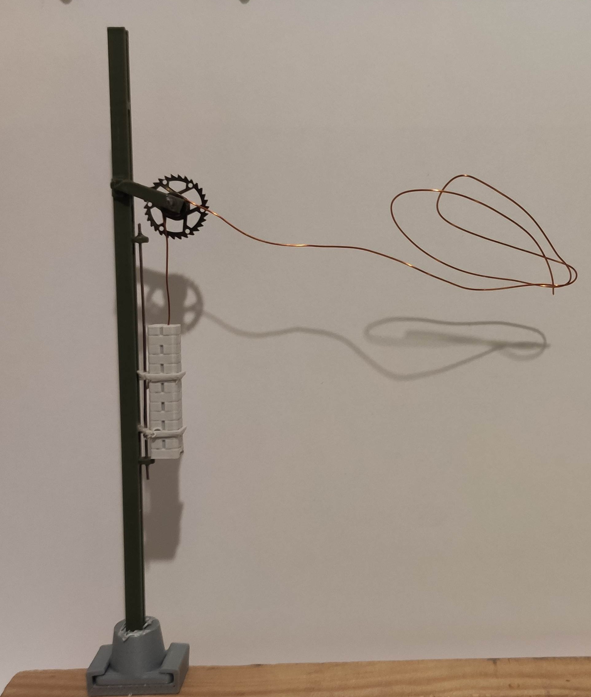 Bovenleiding span portaal met inwendige veer en metalen spanwiel.