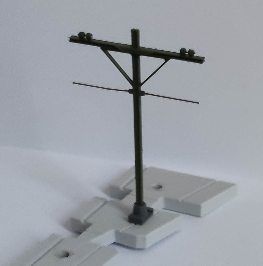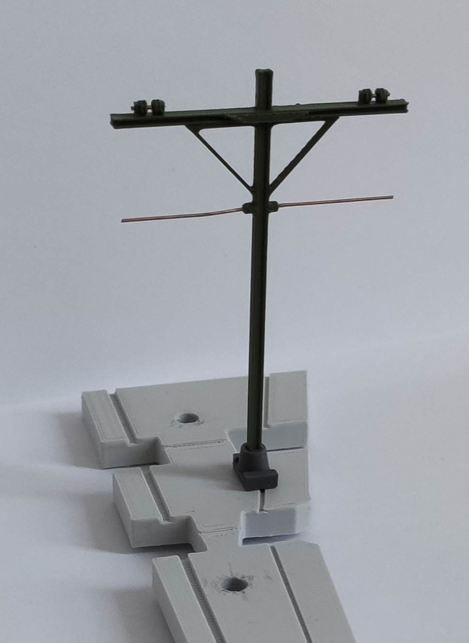 Dubbel spoor portaal schaal N functioneel met verkoperde rijdraad begeleiders
